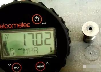 上年檢測了一些室外置放了很多年的樣版,用易高108附著力測試漆膜的附著力,基本上都會(huì)15MPa左右,損壞方式以粘膠劑損壞主導(dǎo),如圖已知4圖示。用打磨砂紙打磨拋光漆膜表層,里邊外露黑亮的金屬質(zhì)感。